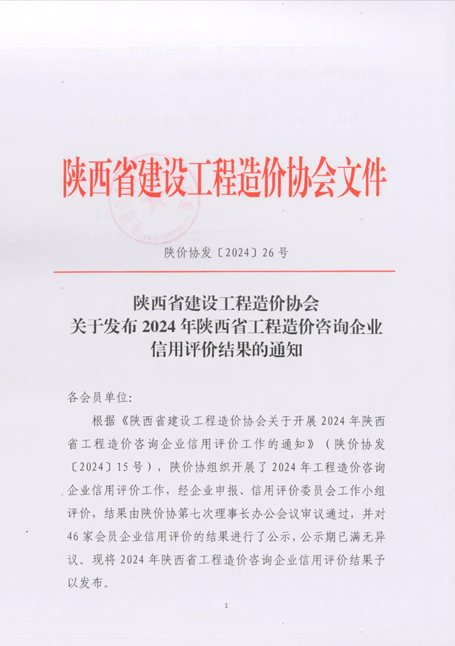 2、11月29日,再度獲評陜西省建設(shè)工程造價協(xié)會2024年度信用評價AAA等級。