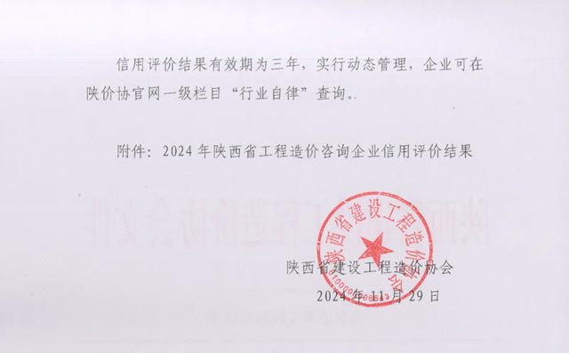 2、11月29日,再度獲評陜西省建設(shè)工程造價協(xié)會2024年度信用評價AAA等級。